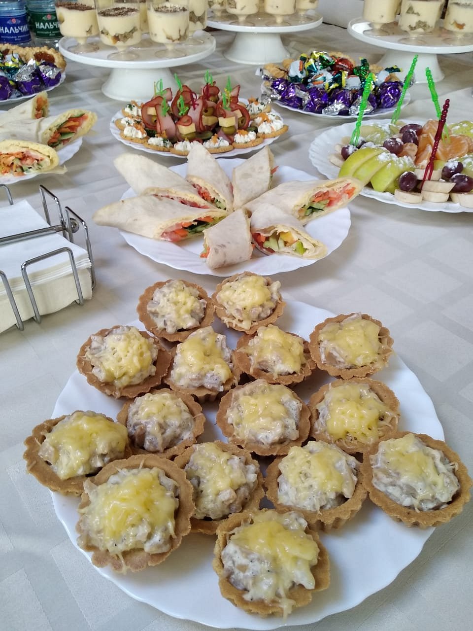 В столовой гостям предлагаются завтрак, обед и ужин, состоящие из нескольких блюд: свежие салаты, горячие закуски, основные блюда, а также десерты. Завтраки могут включать как классические блюда, такие как овсянка, яйца, так и разнообразные выпечку и свежие фрукты. На обед и ужин предусмотрены меню, в которое входят мясные и рыбные блюда, гарниры из овощей, круп и картофеля, а также вегетарианские опции.